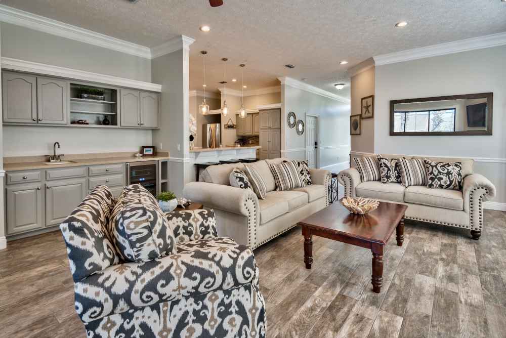 - Wet Bar with wine and beverage fridge in the living room.