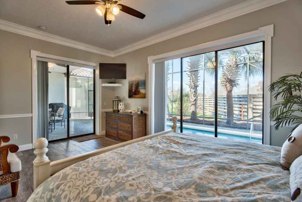 Bedroom 3: King Master Suite with attached full master bath room. Walkout to pool area. Large Flat Screen TV. Sleeps 2.
