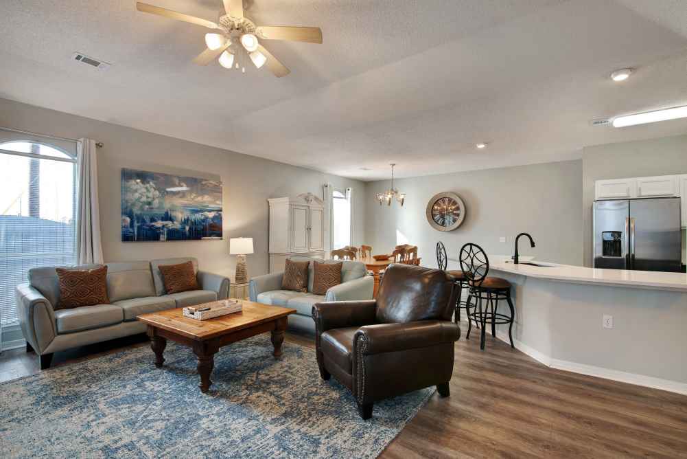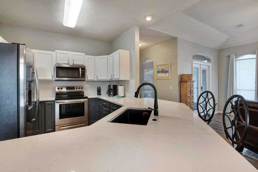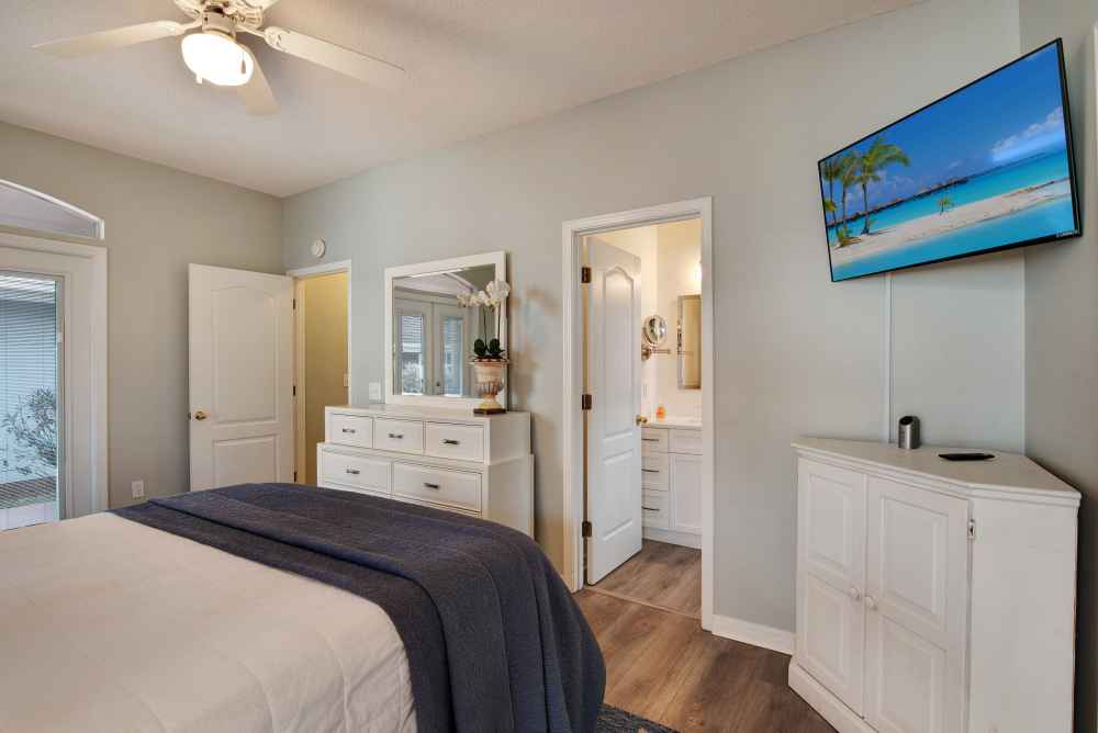 Beach Breeze is set back in a relaxing cul de sac called Onyx Cove. There is plenty of outdoor space with a front porch and second-floor balcony. There is driveway parking for 2 cars only. Inside the home you'll find an open floor plan that has a spacious living room connected to your fully equipped kitchen and dining area. The kitchen will have everything you need for your week's stay, along with an eat-in counter. On the first floor, you will have 1 bedroom, while the second floor will have 2 bedrooms. You will also find a balcony with views you can't imagine, and a screened-in back porch on the main floor to help you close out your sunny Florida day.