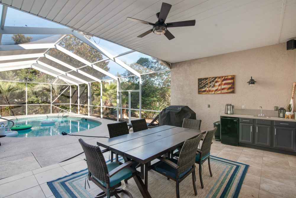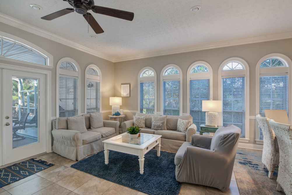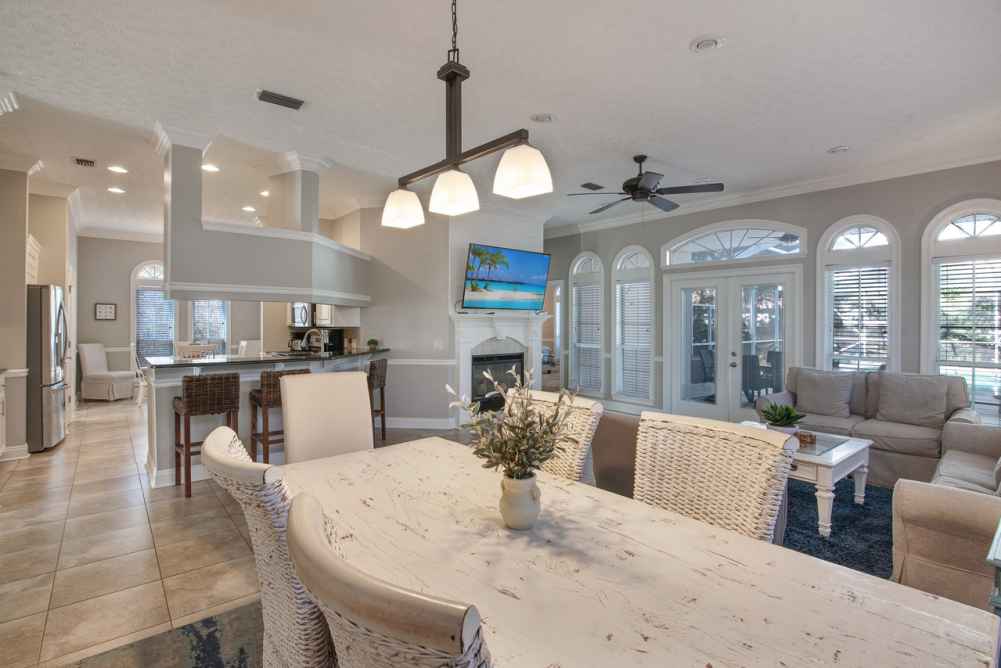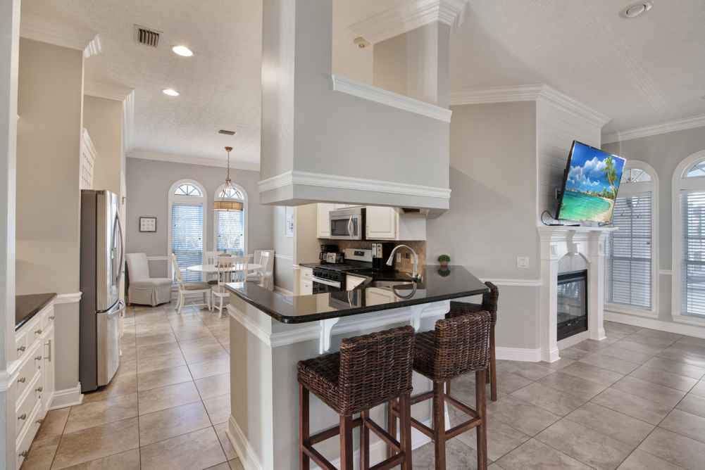The open concept of the living room, kitchen & dining area assures you that you will receive the most gorgeous natural light that Destin has to offer, along with the perfect social space during your stay. The kitchen is fully equipped for whatever your cooking needs desire. You'll also find a breakfast nook & eat-in counter. Attached to the breakfast nook, you'll find the fully equipped laundry room. Attached to the living room is your private pool dream! With an outdoor fridge, sink, dining area & grill, you'll be able to spend all hours of the day out back. Optional pool heating is available during the booking process.