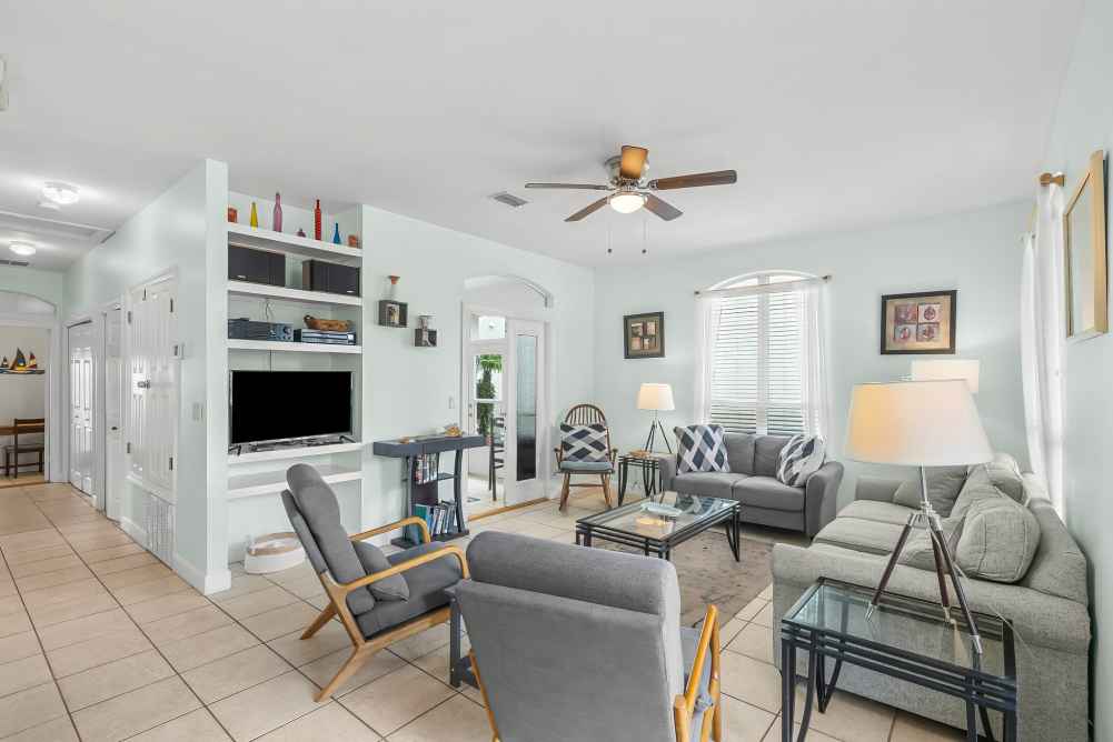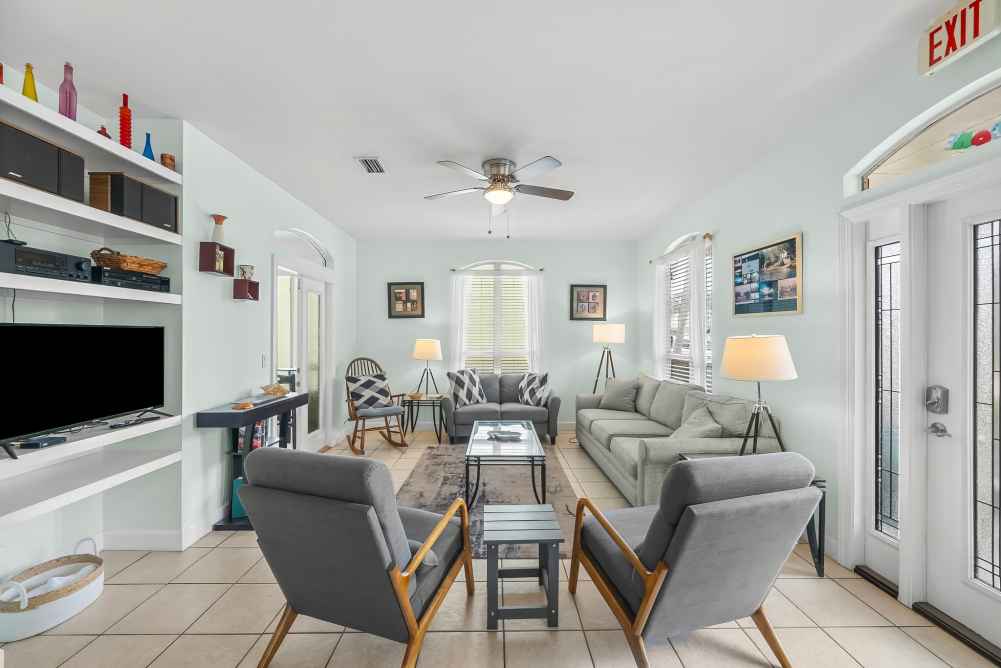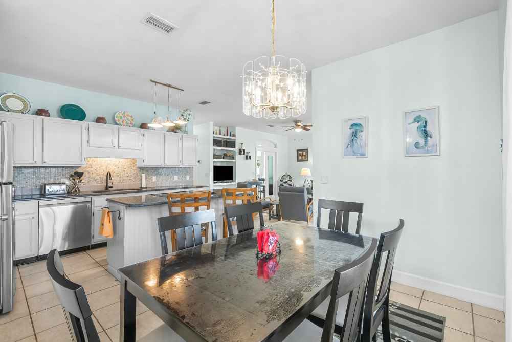Nestled in a quiet cul-de-sac within Emerald Shores, Destiny Sun offers ample outdoor space with a welcoming front porch, four four-season room, and a private, fully fenced backyard. The updated kitchen features modern appliances, a breakfast bar, and a dining area perfect for family meals. Enjoy outdoor grilling on the patio with a charcoal grill and outdoor seating. A washer and dryer are provided for your convenience.