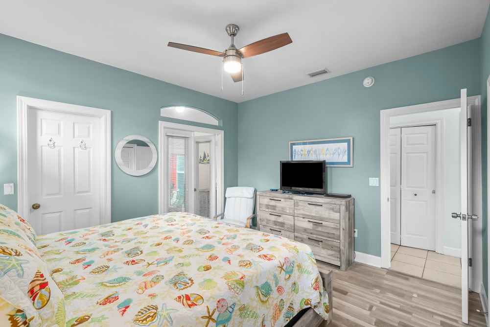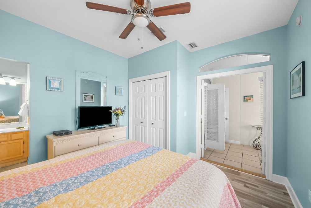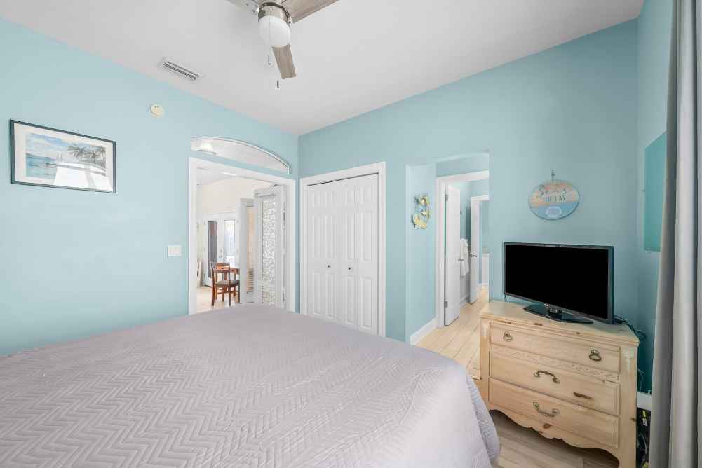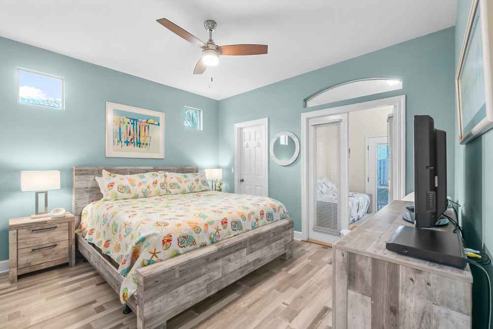 Master Bedroom: King bed, private bathroom - walk-in shower- Sleeps 2